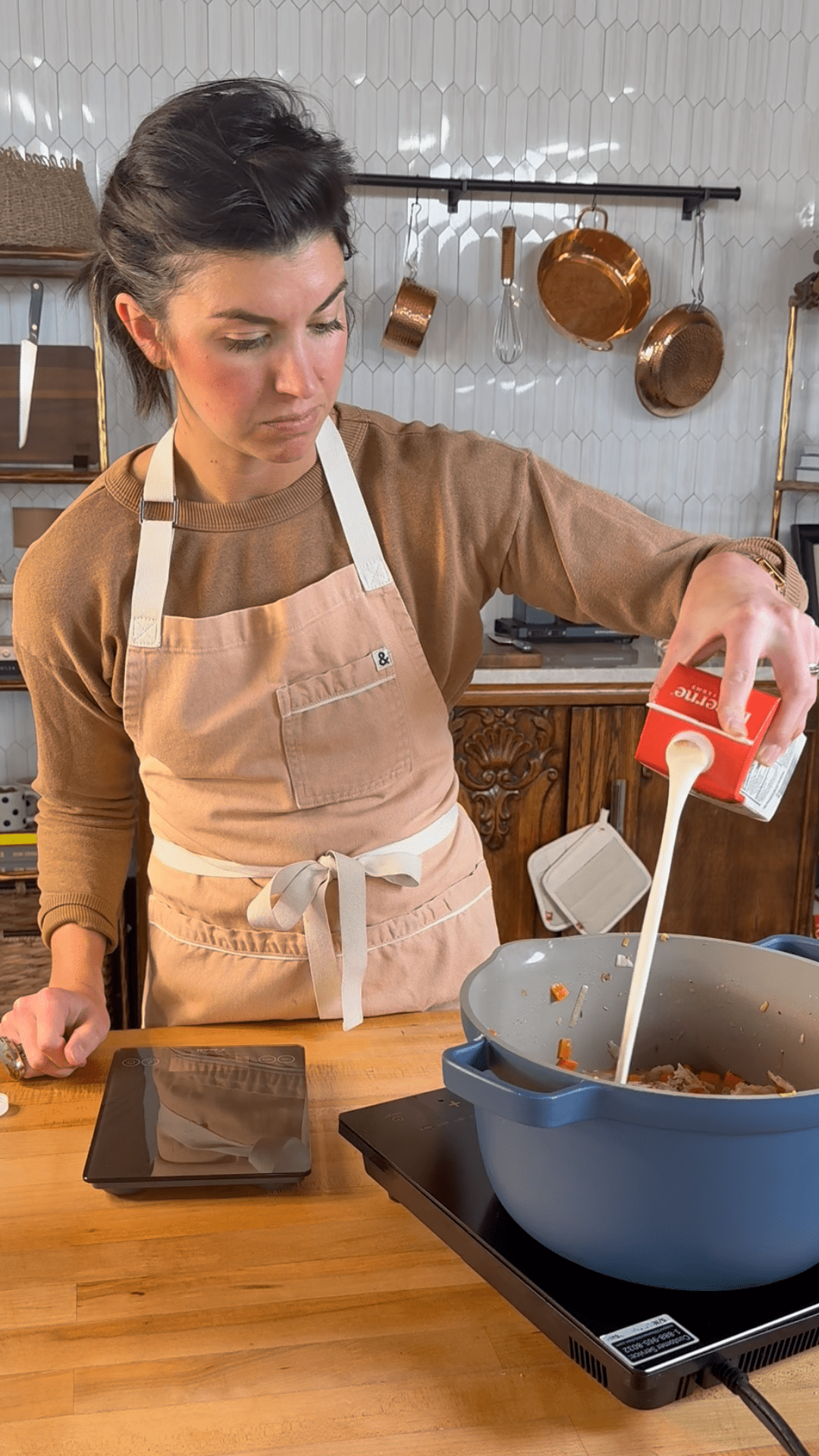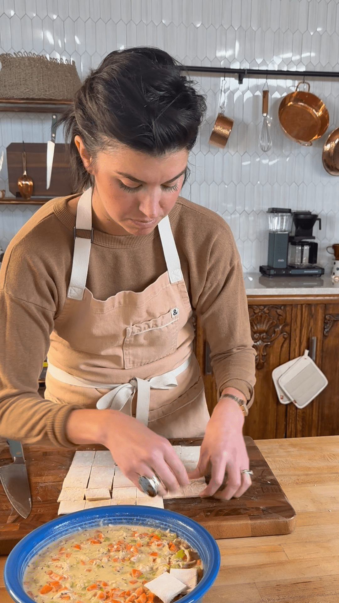 Instead of rushing or overcomplicating things, this recipe leans into thoughtful shortcuts and classic flavors. Leeks, carrots, and celery create a gentle, savory base, while rotisserie chicken keeps the process approachable without sacrificing flavor. A generous pour of heavy cream brings everything together into a filling that’s rich without being heavy.