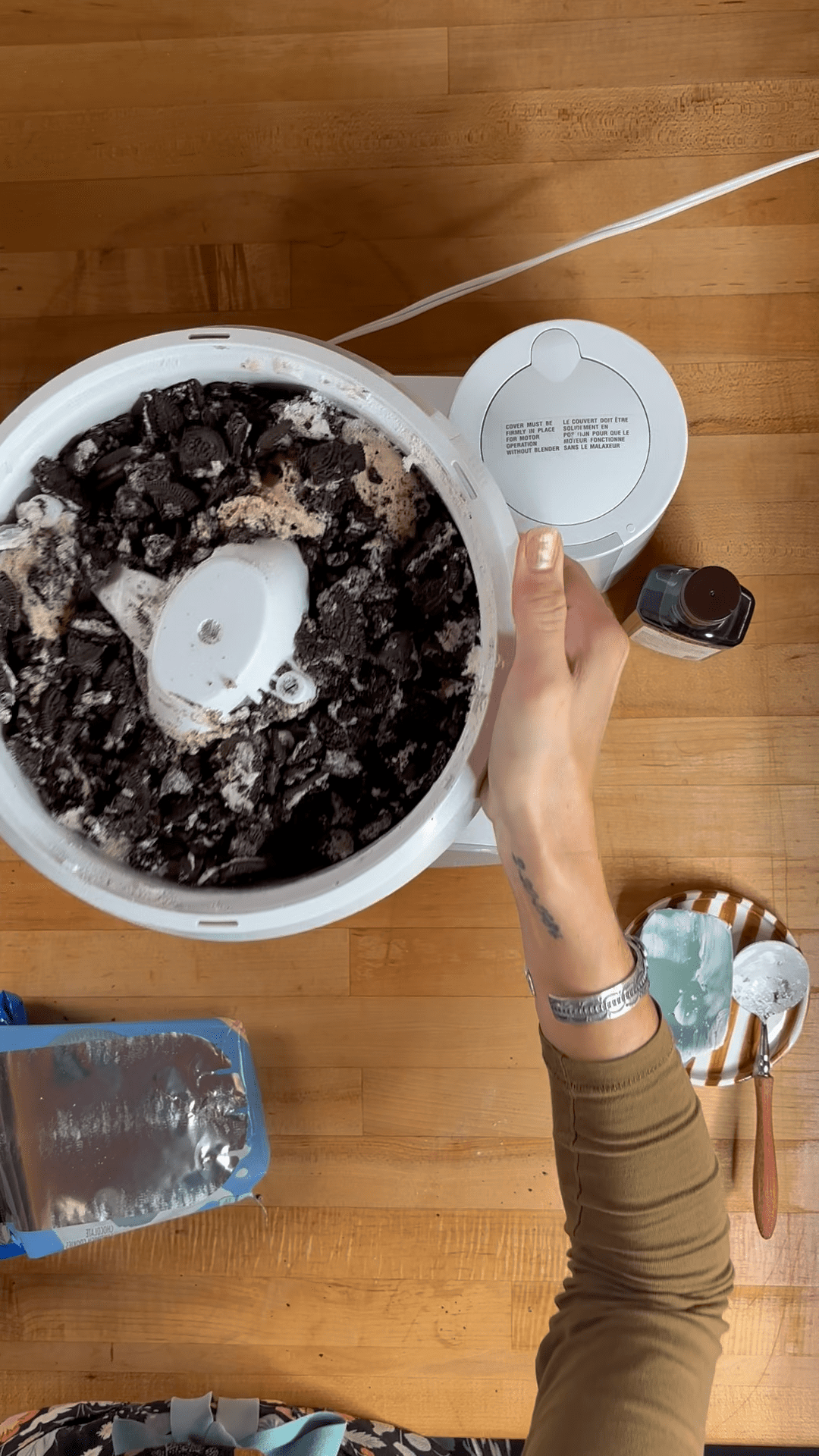The dough itself is sticky — that’s what makes the cookies so soft! You can bake it right after mixing or chill it for a short time to make it easier to handle. Either way, you’ll end up with thick, creamy, cookies ’n cream perfection.