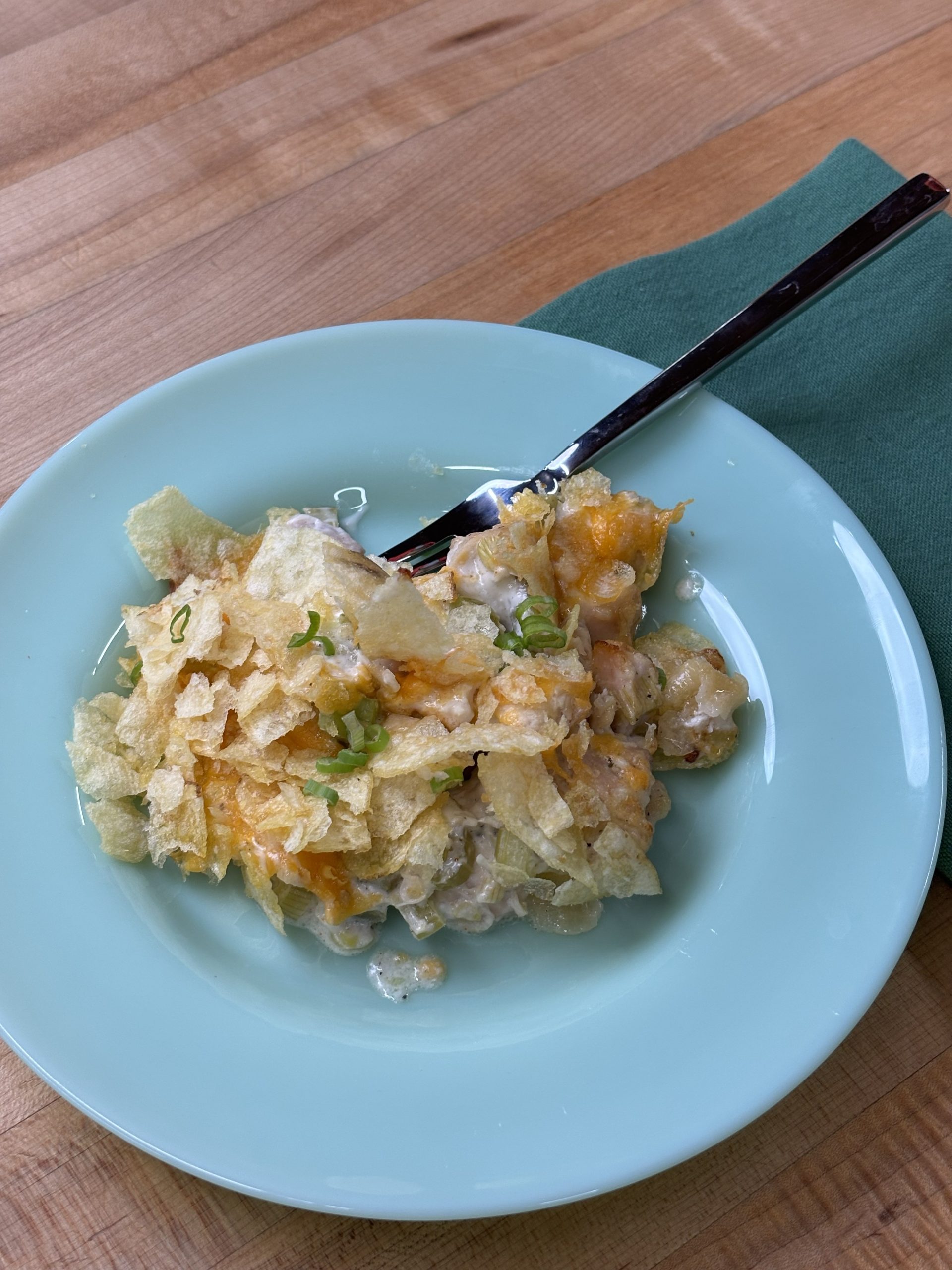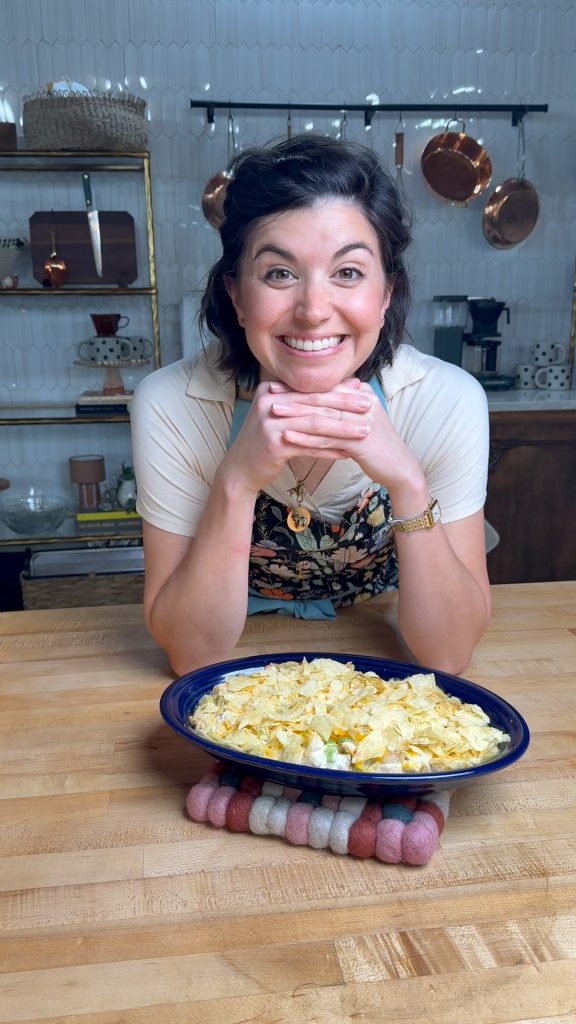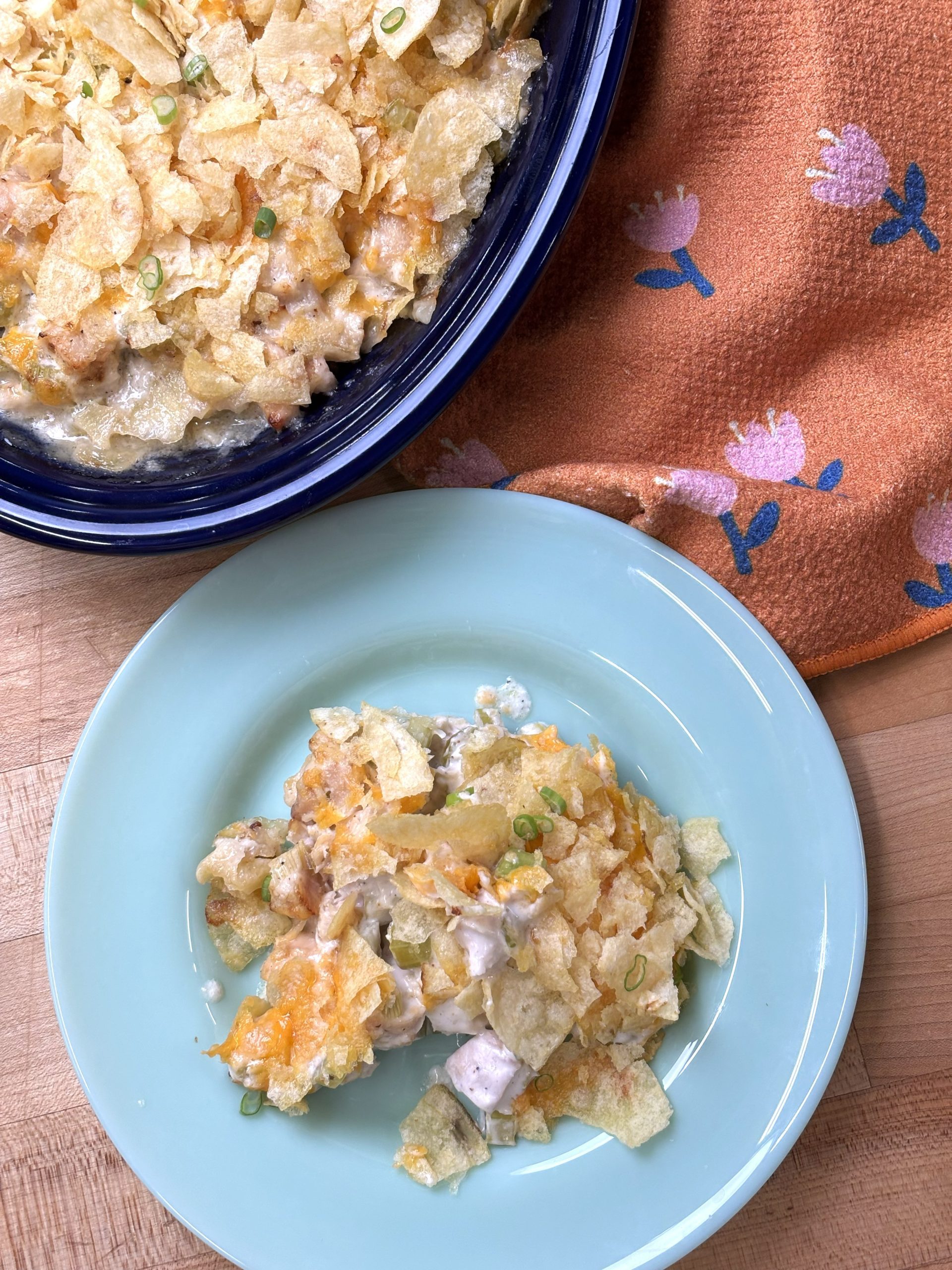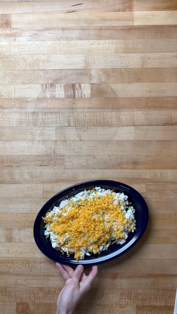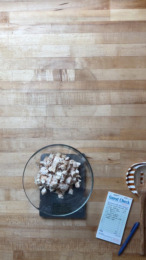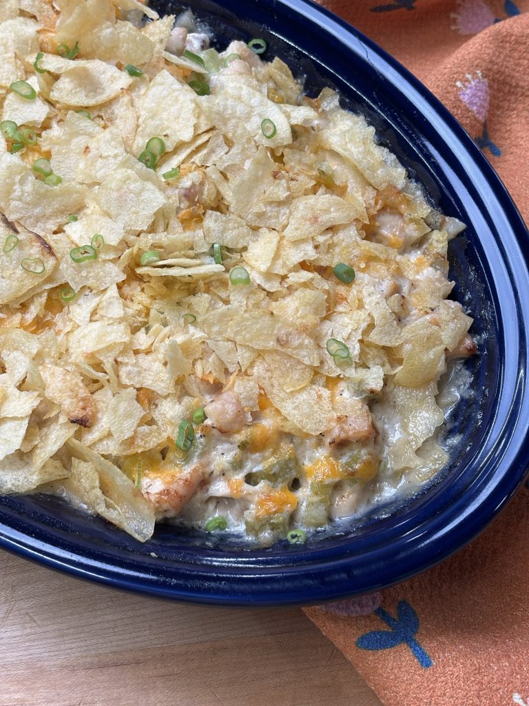 Bake your chicken until it’s just slightly under 165°F. We like to pull ours a few degrees early because it will continue to rise to temperature as it rests. This keeps your chicken juicy and tender—exactly what we want for this casserole.