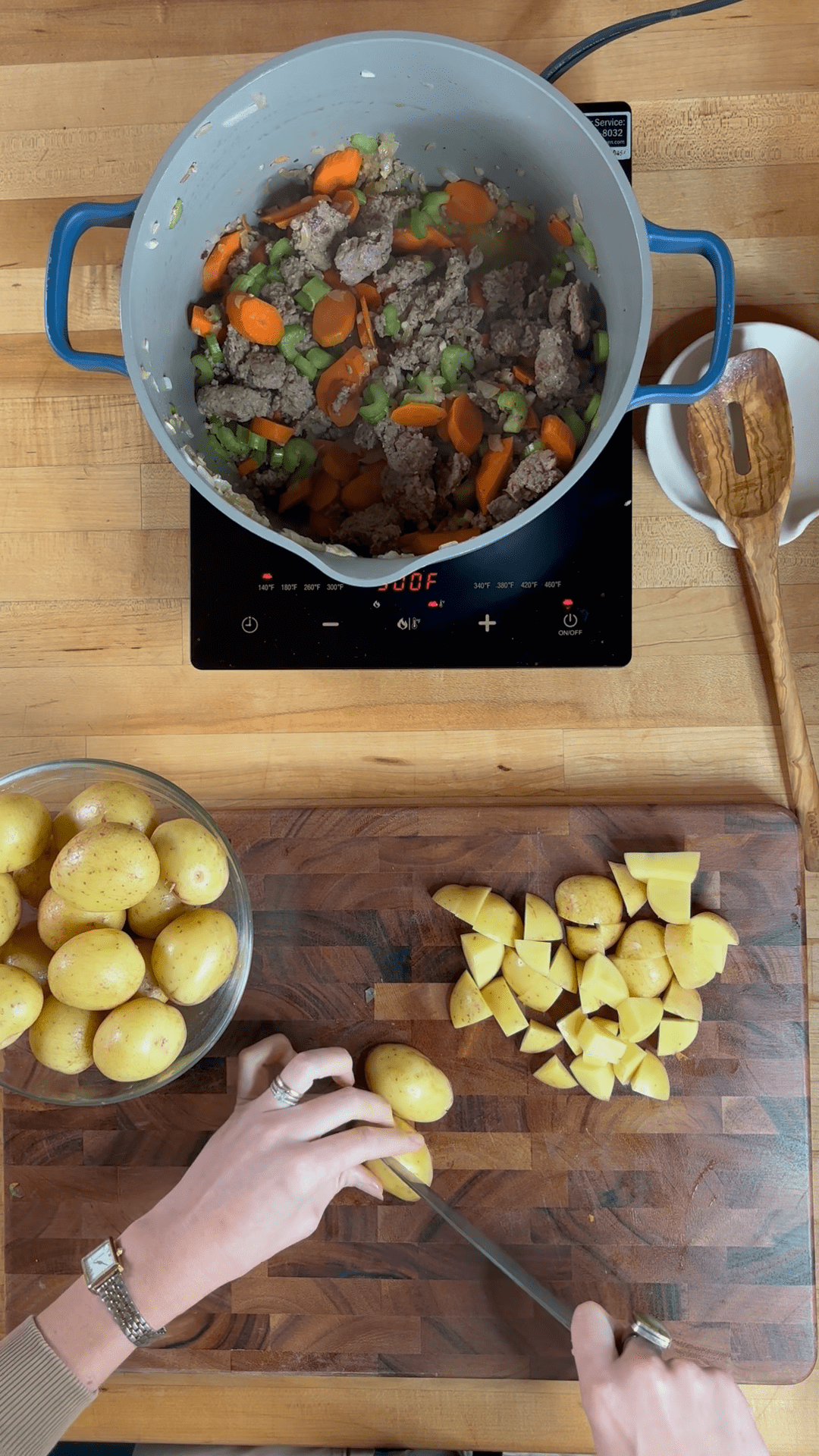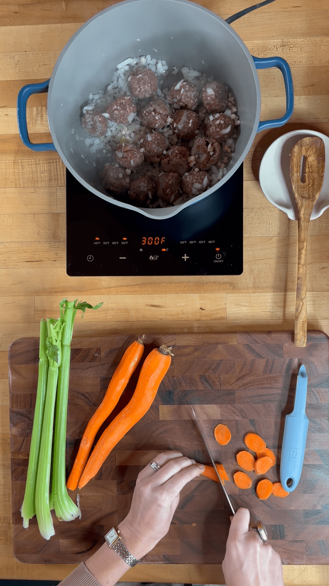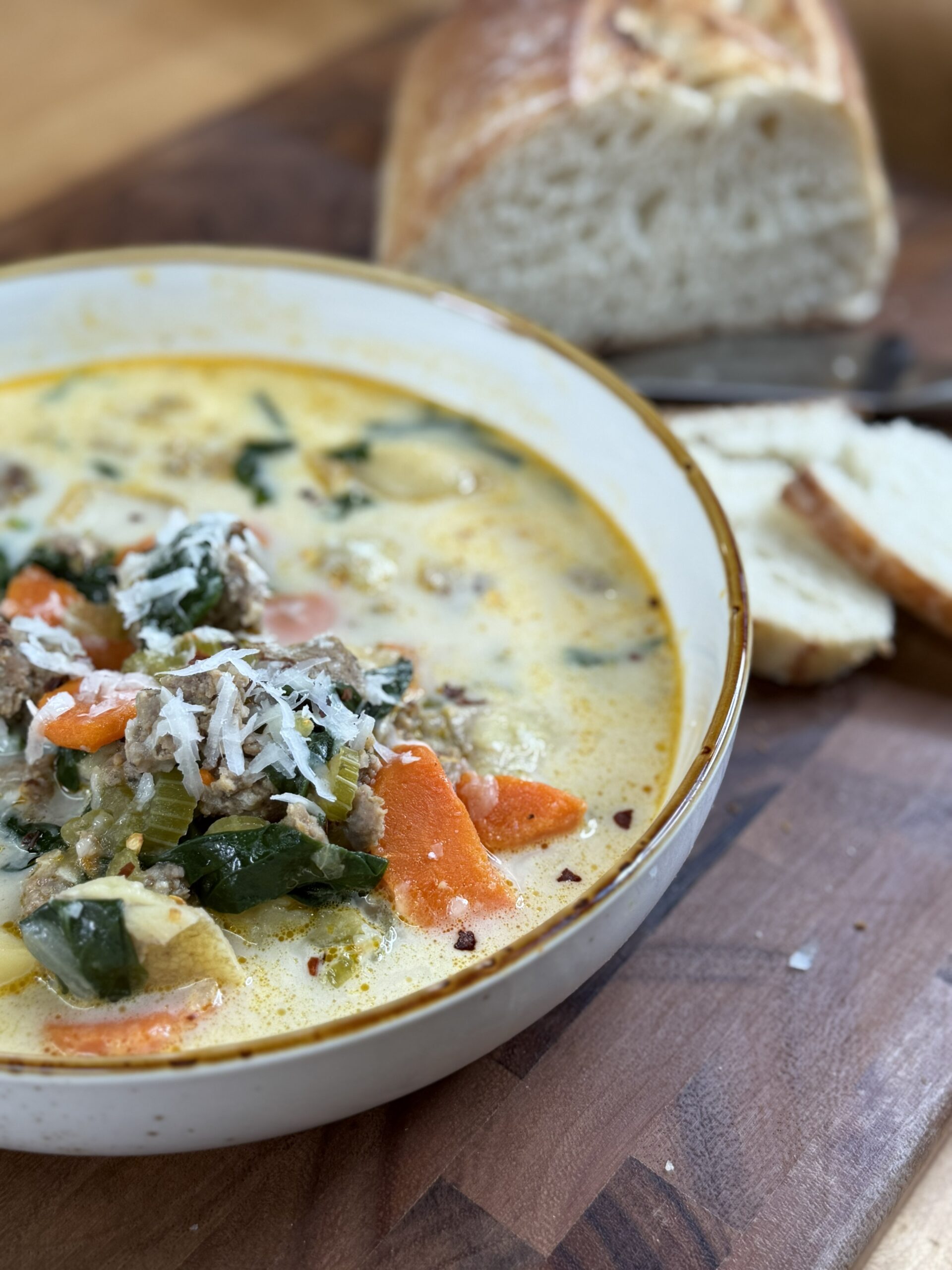 This soup starts with tender, flavorful Italian meatballs, browned to perfection before taking a gentle simmer in a rich, savory broth. Into the pot go carrots, potatoes, and spinach — a trio that brings sweetness, substance, and a touch of vibrant green.