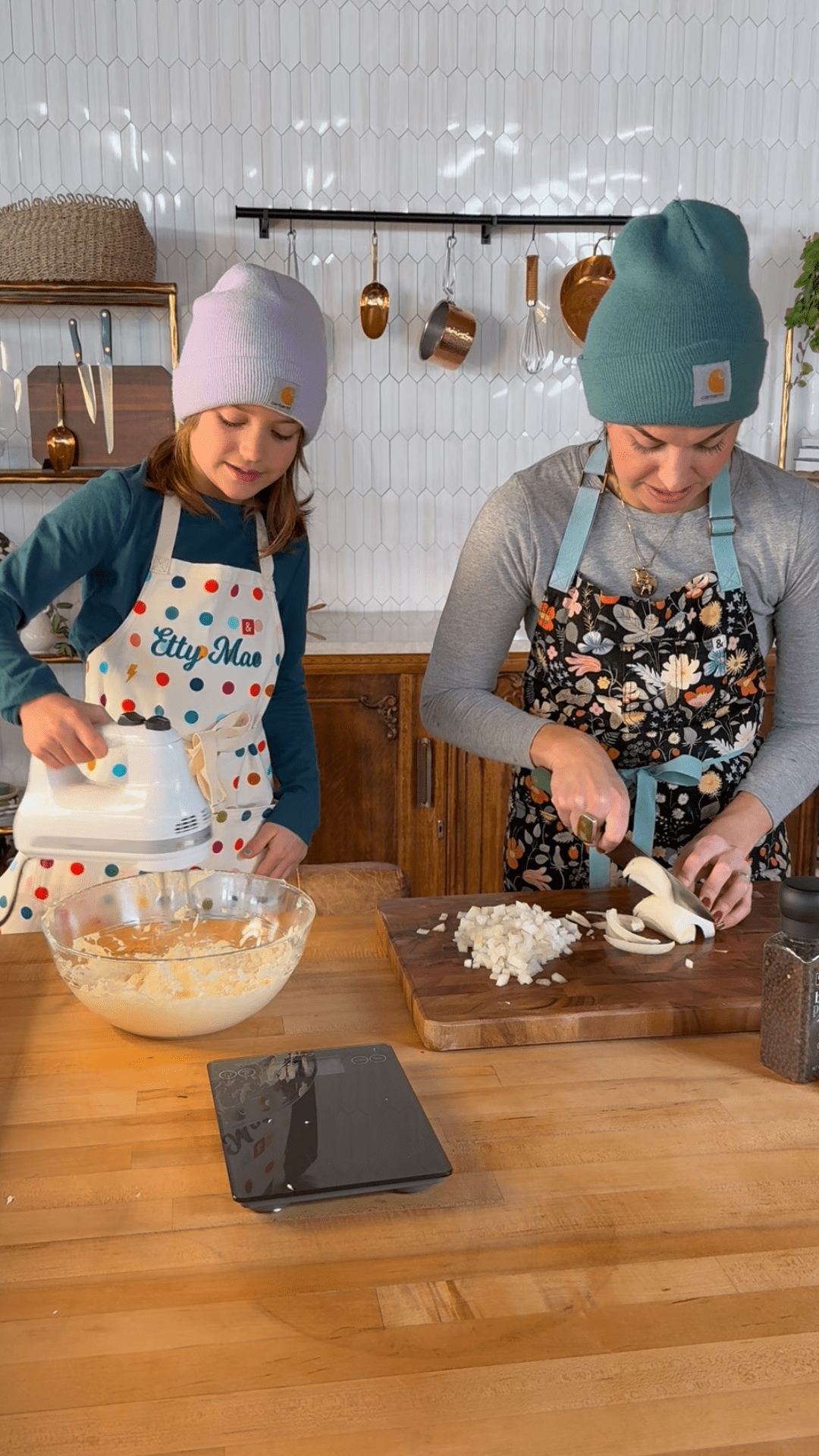 We start with a simple base of mayo and cream cheese, folded together with shredded parmesan and diced yellow onion. Once baked, it turns warm and bubbly with a deeply savory flavor that feels elevated without trying too hard. It’s straightforward, familiar, and exactly what we want when we’re hosting or just craving something cozy.
