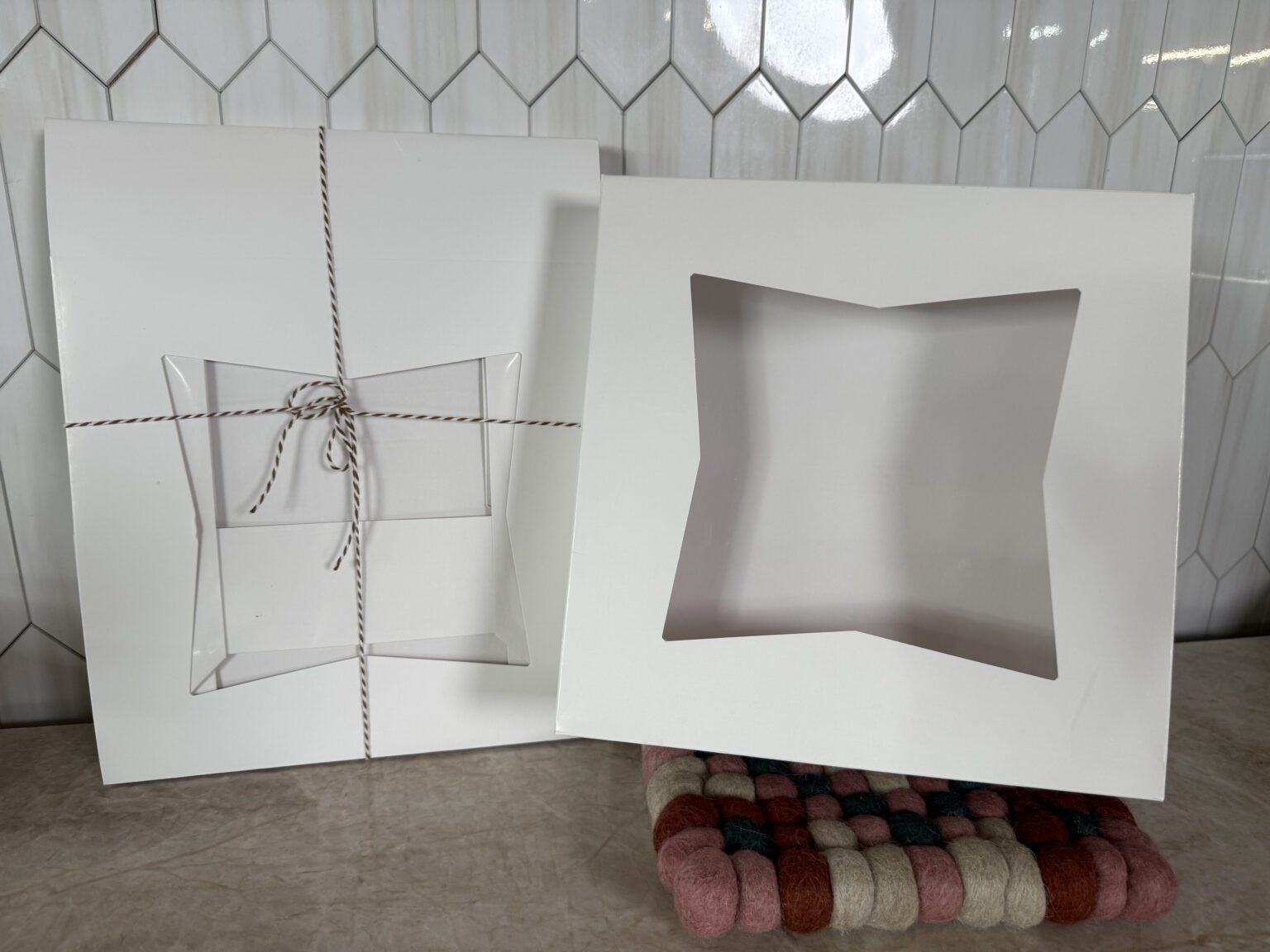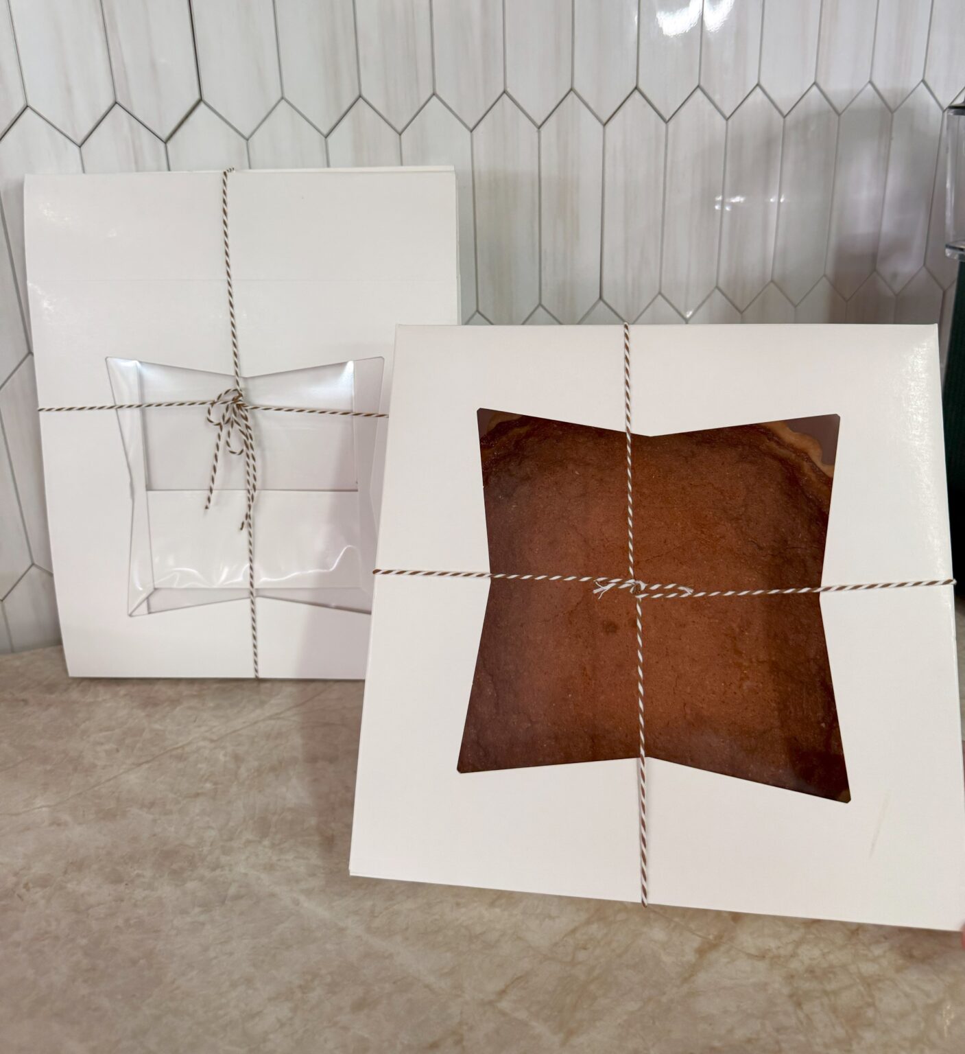 10″X10″x2 1/2″ Bakery Box with window is perfect for gifting all of your favorite cookies, bars and pies! A bundle of 5 pie boxes.