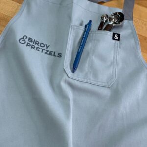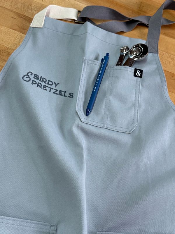 With a dusty gray body and black webbing, our Earl Grey apron is