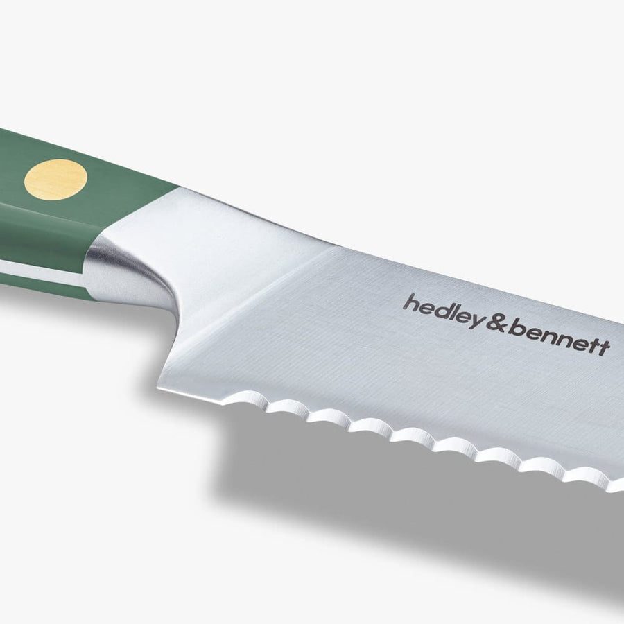 When it’s a bit tough on the outside but soft on the inside (sounds like most chefs we know!), the H&B Bread Knife is the tool for the job. The serrated edge gives you the bite you need to get that perfect slice, and the slight angle of the cutting edge makes for more comfortable and versatile handling, so you can take on whatever is in front of you. Pick it up, and cruise through that bread crust, ease through that eggplant, and whip through that watermelon. You got this!