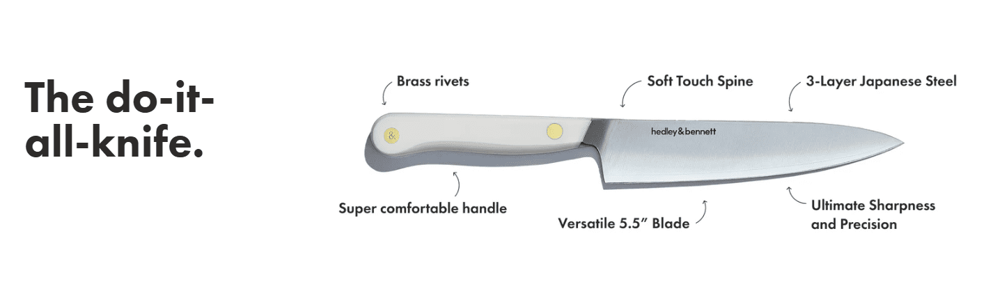 This Utility Knife is one of our favorite tools, and we designed this one with the help of top chefs to get every detail right. Easier to maneuver than a Chef’s Knife, and more versatile than a paring knife, the Utility Knife has just the right proportions to feel nimble in your hand for the small stuff (cocktail wedge, anyone?), but big enough to take on bigger jobs too (like breaking down your whole farmers’ market haul). Think of it as your new best friend in the kitchen.