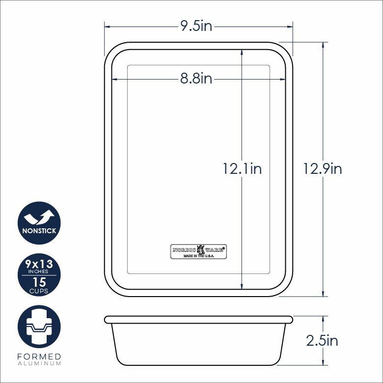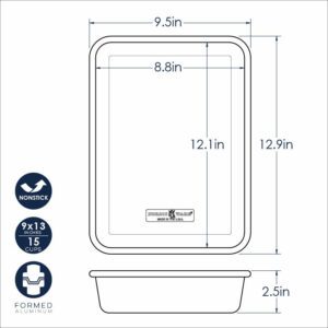 A necessity for any chef’s kitchen, this Rectangular Cake Pan provides the ultimate in cake baking perfection. Made with nonstick aluminum, this 9″ x 13″ pan provides an even baking surface and extremely easy cleanup. Proudly made in the USA.