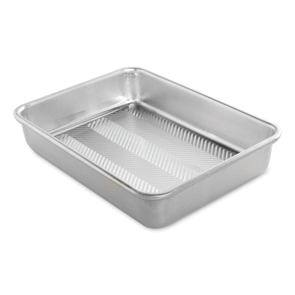 Embossed Natural Aluminum Bakeware enhances the look and performance of our hugely popular baking pans. The exclusive Prism grid adds durability and provides easy release while improving airflow for uniform crisping. Encapsulated galvanized steel rims prevent warping. This 9″ x 13″ baking pan is essential in the kitchen.