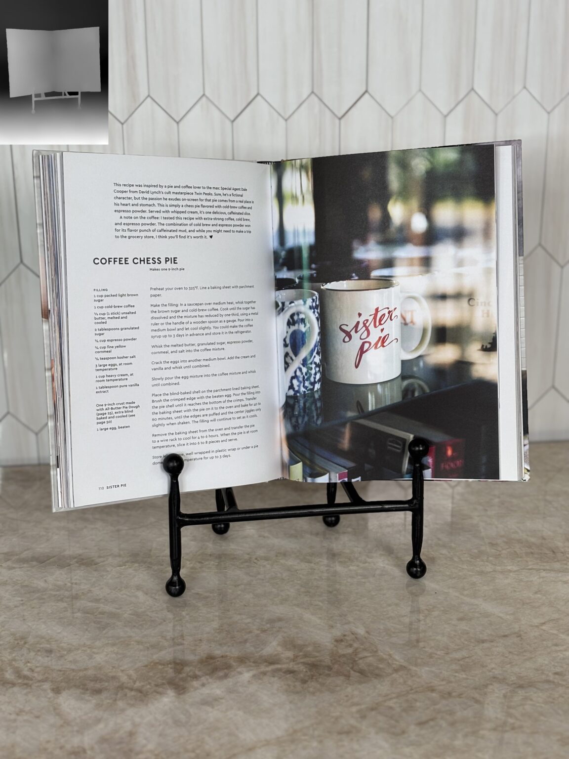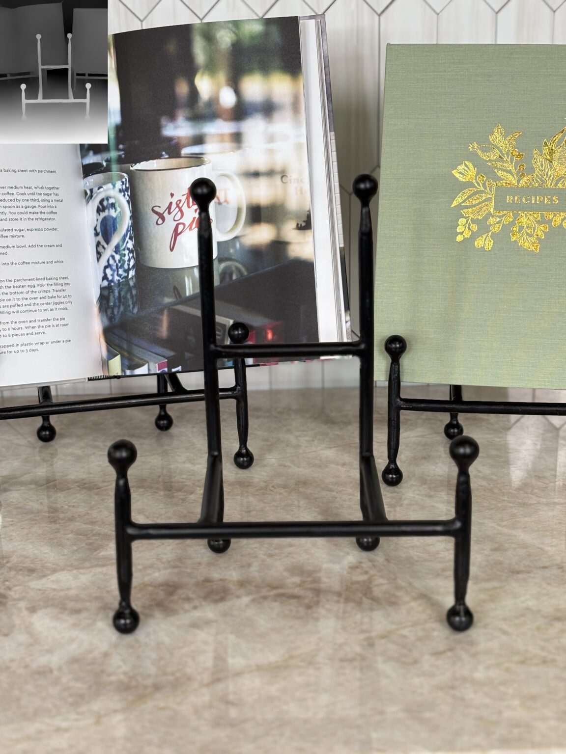 This black iron recipe easel is perfect for displaying your favorite B&P Recipe or cookbook. Standing 10″ tall