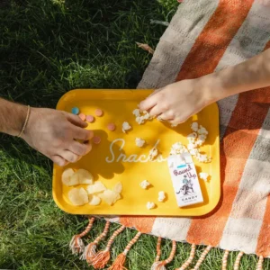 Poolside, Beachside, Picnic in the Park, or lazing on the Couch – this vintage-inspired Snacks tray is durable and long-lasting fiberglass. Measures 14″ x 10.5″. Made in USA. Dishwasher Safe