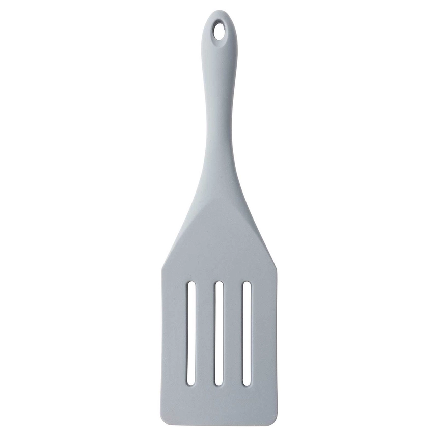 Upgrade your kitchen tools with these NSF certified high heat tools. Never leave a scratch or mark with these non-abrasive silicone tools. This Slotted Spatula is perfect for flipping and serving, the slotted blade allows for excess liquids to drain, too!
