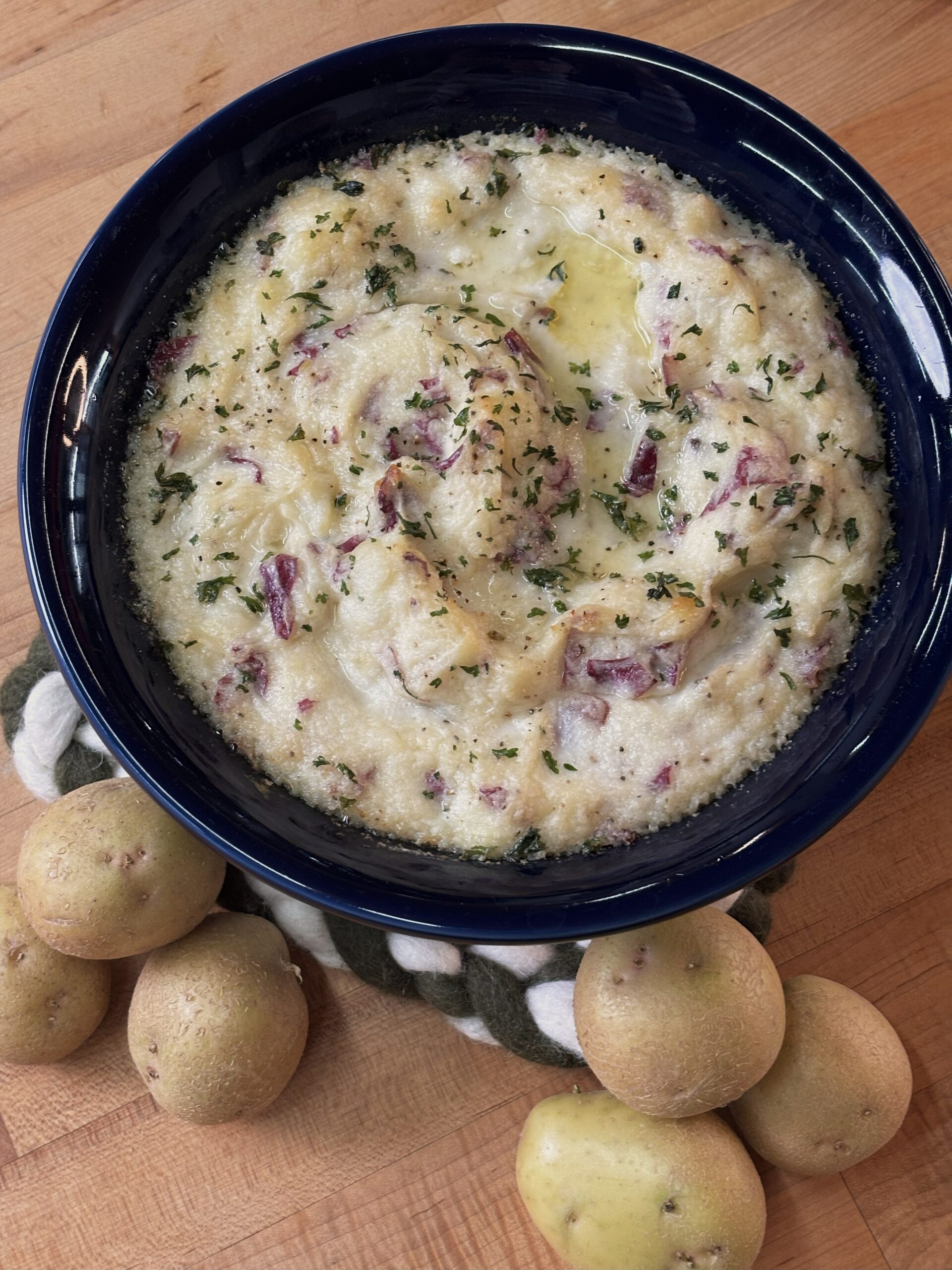 It all starts with red-skinned potatoes, which give a naturally creamy texture and lovely color — and yes, we leave the skins right on for rustic charm and less prep.