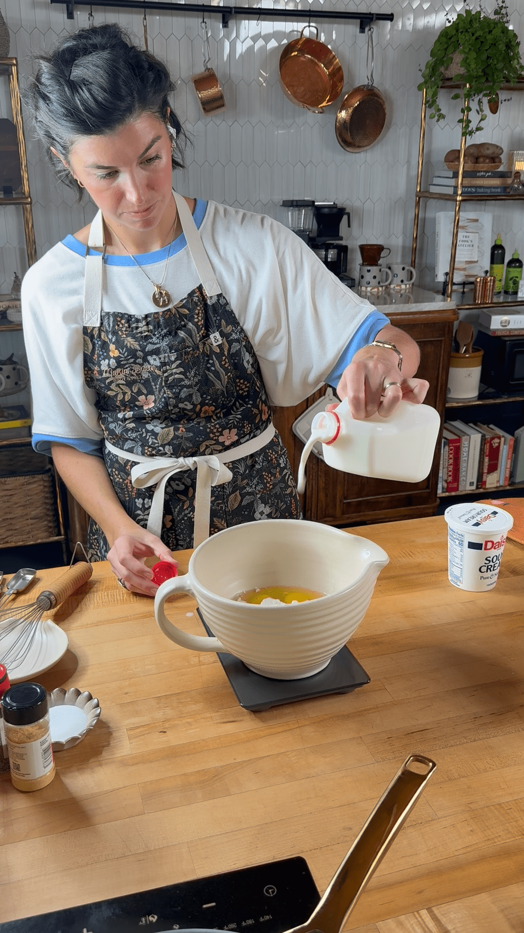 The magic happens with the topping — a smooth mixture of eggs, milk, and sour cream whisked together and poured over the base. As it bakes, the eggs set perfectly while the sour cream adds a creamy tang that keeps every bite moist and rich.