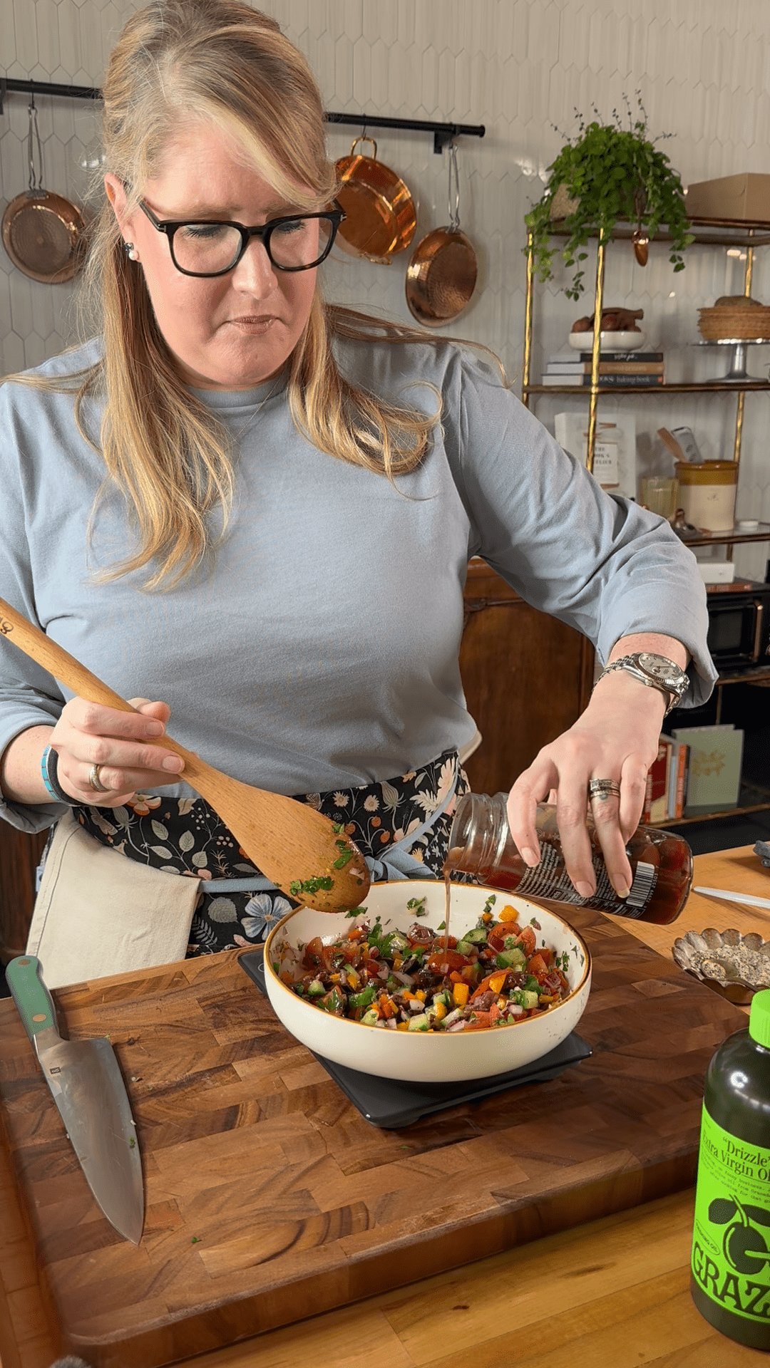 Make it ahead! The flavors only get better after a few hours in the fridge. For an extra flourish, top with a spoonful of Birdy & Pretzels Whipped Feta just before serving.